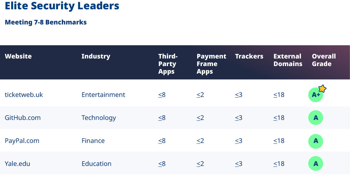 Among the 4,700 analyzed sites, 429 demonstrated strong security outcomes. These organizations prove that functionality and security can coexist: