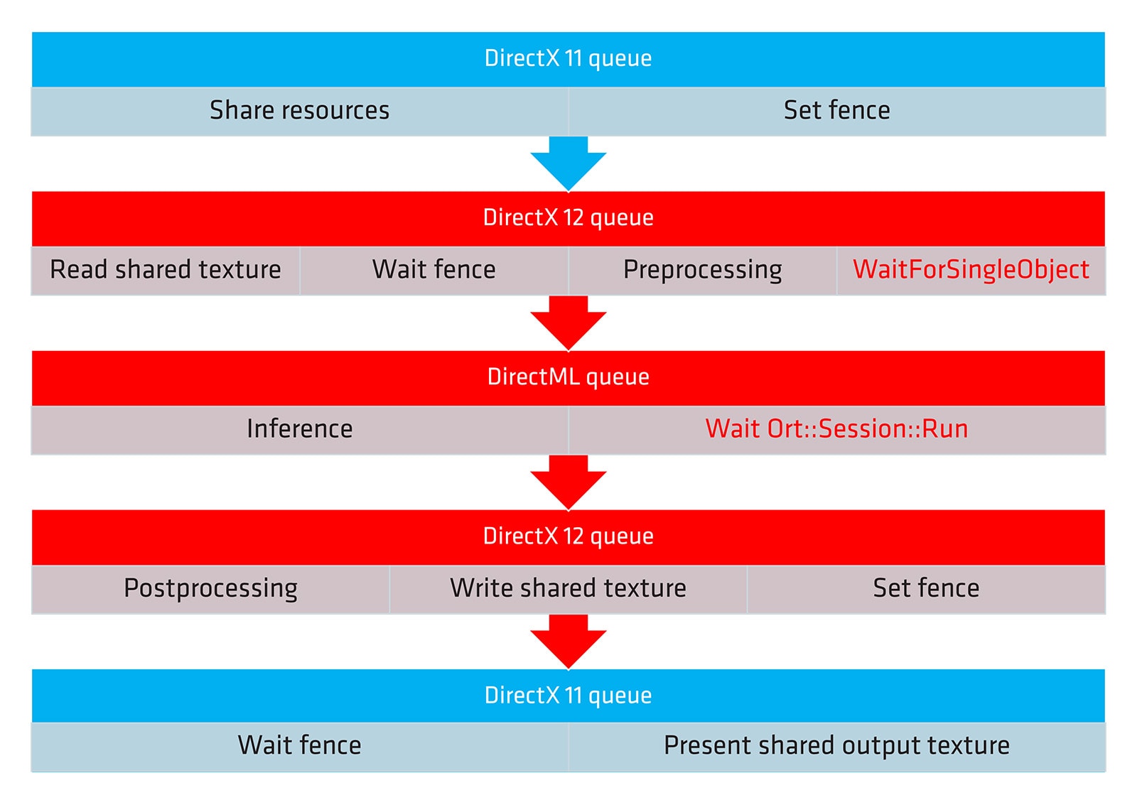 Here is the full inference pipeline of mixed DirectX 11 and 12 and it’s more complicated than the native DirectX 12 version but not hard to achieve.