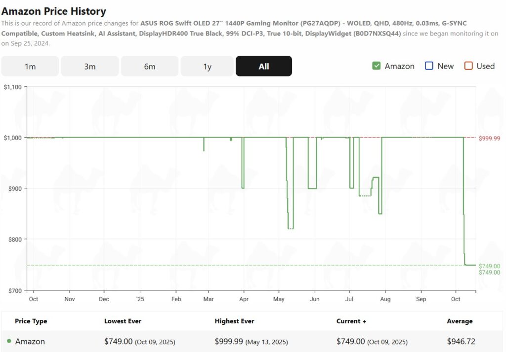 If you head over to Amazon, you’ll see that the ASUS ROG Swift OLED 27″ gaming monitor is currently listed at 25% off. Previously, it was available for $999, but thanks to the deal, you can save $250 and get it for only $749.