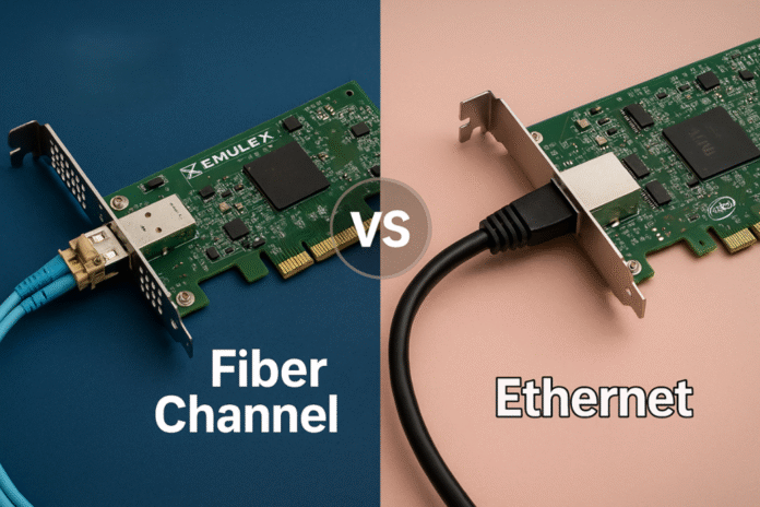Fiber Channel provides unrivaled dependability and constant performance for mission-critical storage, but Ethernet is a cost-effective solution for the majority of workloads. Choose Fiber Channel for enterprise SANs that require guaranteed lossless transmission. Choose Ethernet when budget and flexibility are more important than absolute performance constancy. Many firms employ both Fiber Channel for tier-1 applications and Ethernet for ordinary storage. To make the best investment option, consider your performance needs, budget, and future growth objectives.