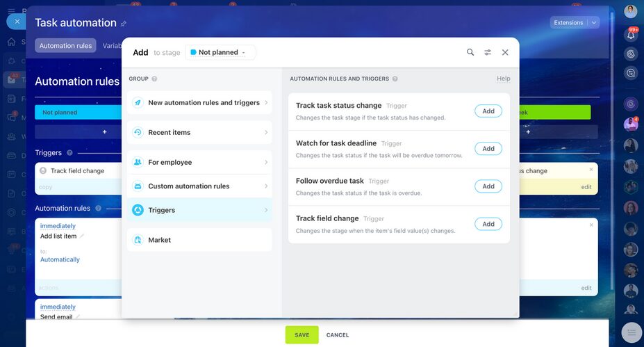 Finally, AI Reporting & Productivity Insights give project managers a clear, data-driven view of project health. Smart time tracking and analytics provide accurate time estimates, while the system automatically generates progress reports and identifies risks. By predicting delays, resource bottlenecks, and workload imbalances, Bitrix24 helps managers make crucial data-driven adjustments early.