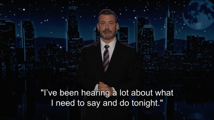 “This show is not important,” said Kimmel. “What is important is that we get to live in a country that allows us to have a show like this…. Our freedom to speak is what [talk show hosts in other countries] admire most about this country. And that’s something I’m embarrassed to say I took for granted until they pulled my friend Stephen [Colbert] off the air, and tried to coerce the affiliates who run our show in the cities that you live in to take my show off the air.